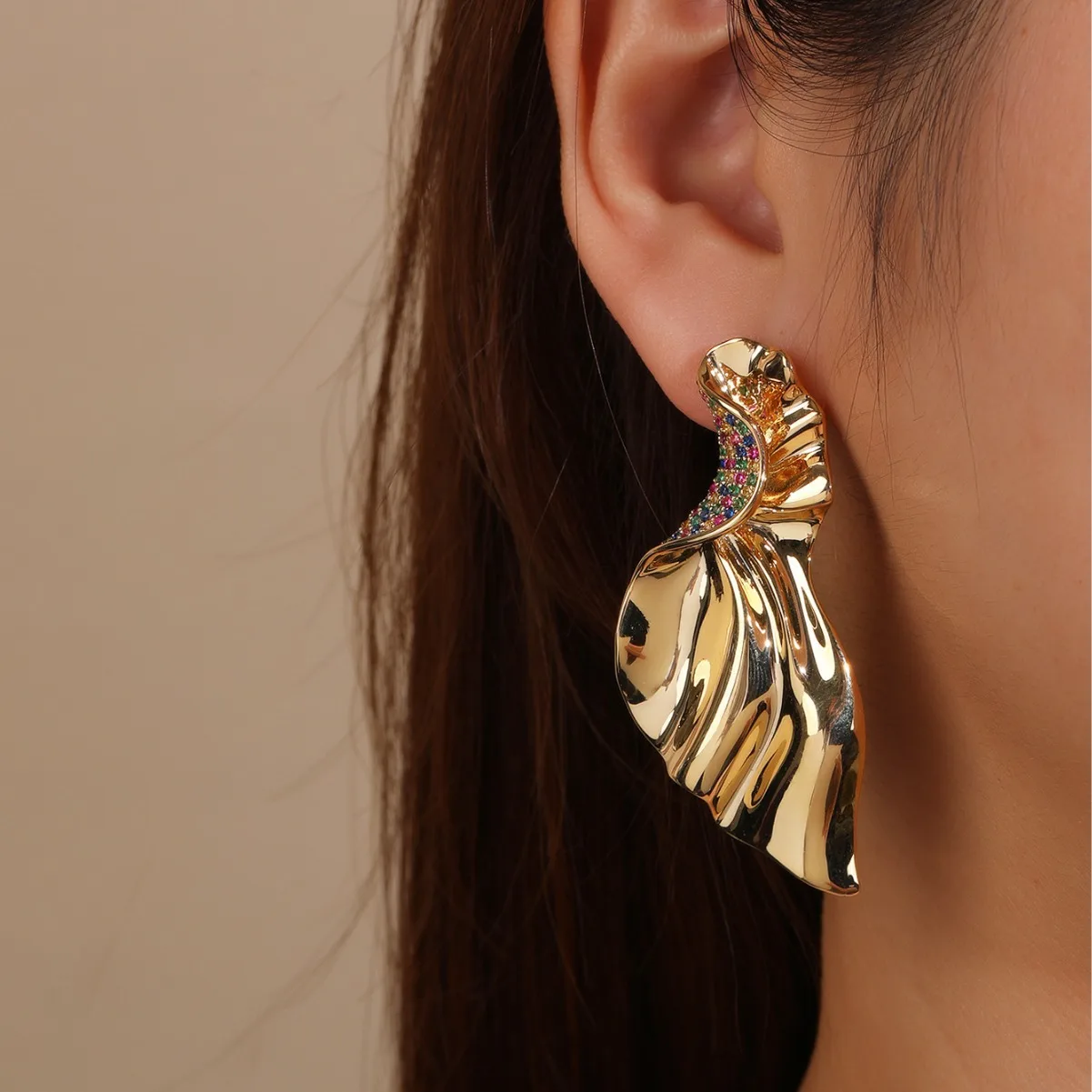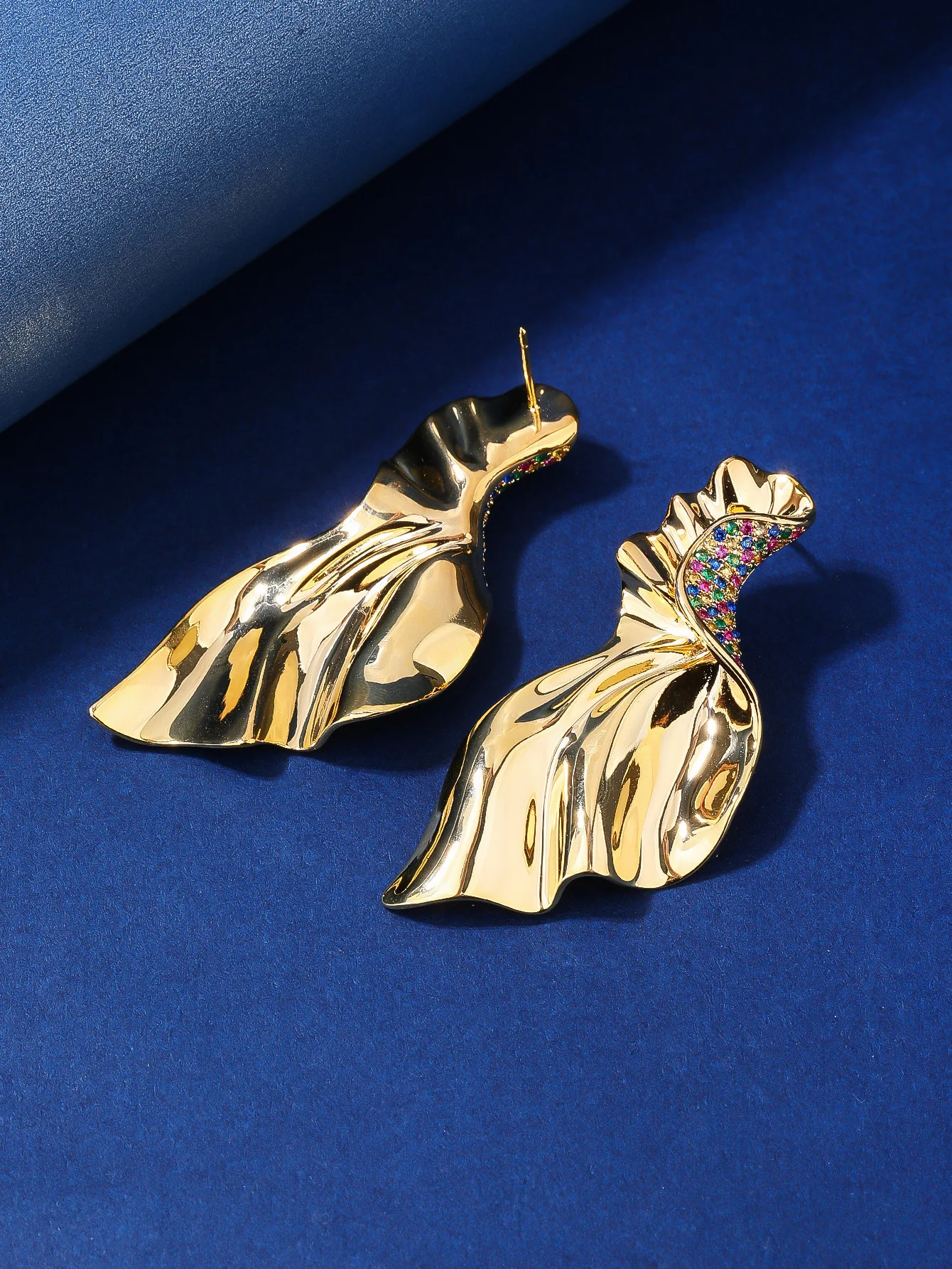 Luxurious Daily Wear Gold-Plated Zircon Drop Earrings for Women Yellow Gold Material Gift Idea